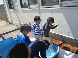 今年最後のプール、水遊び