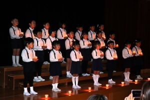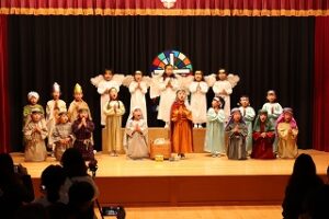 年長児のキャンドルサービスから始まって、年少児のオペレッタ、年中児の歌と合奏、年長の聖劇をしました。練習があまり出来ていなかったですが上手に出来たと思います。