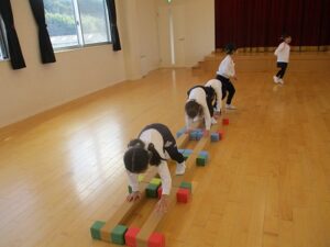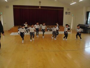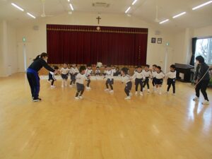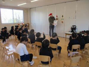 2学期最後の体操教室、英語教室でした。体操では鬼ごっこなどたくさん走って身体を動かし、英語ではクリスマスの歌をうたいました。今日も寒かったですが、外で元気いっぱい遊びました。