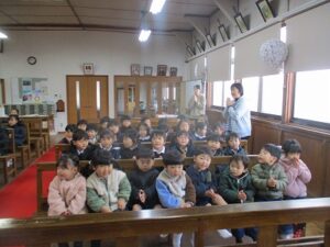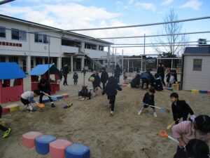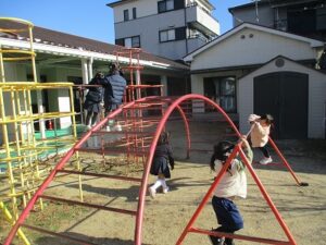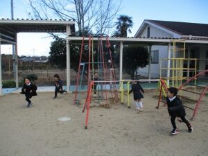 3学期が始まりました。お御堂でお祈りをして外遊びをしました。久しぶりに友達と会えて嬉しそうな子どもたちでした! 今日からいちご組に新しいお友達が入園しました。