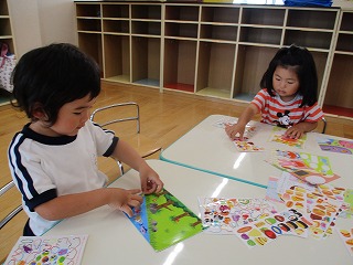 いちご組 シール貼り
