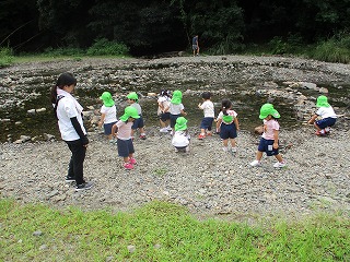 川で石を投げて