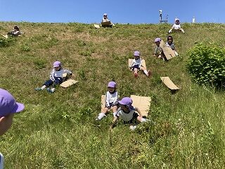 年長児 芝生滑り