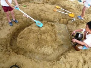 今日は壁面製作をしました。さくら組はひまわりに顔を描き、かえで組は浴衣を着た自分を作りました。「難しい~」と言いながらも上手にできていました。また壁に飾ろうと思います。お昼からはプールに入りましたが、少し肌寒かったので早めにあがり、泥んこ遊びをしました。キュウリと年長児のおすそ分けで、トウモロコシも食べました。みんな「甘くておいしい!」と喜んでいました。 年中児担任