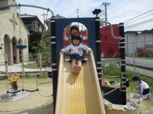 登園時泣いていた子どもも、すぐに泣き止みました。朝のお祈りも座って出来ましたよ。みんなでアンパンマン体操をしましたが、喜んで先生の真似をして体操できました。その後、たくさん外遊びをしました。今日はみんなお家ではぐっすり眠ってくれると思いますよ。 年少児担任