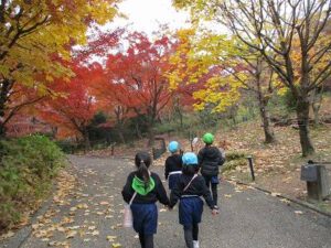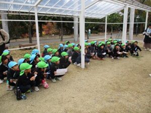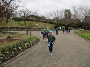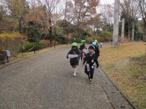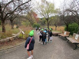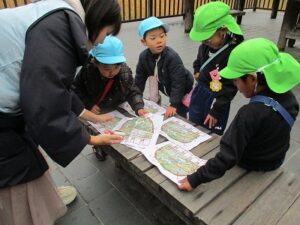 年中、年長児で宇治市の植物園に行きスタンプラリーをしました。4~5人グループに分かれて、地図を見ながら5つのポイントを探しました。「こっちかな?」「あっち行ってみよう!」とグループで協力し頑張ってスタンプを集めていました。幼稚園に帰った後は、給食を食べて外やお部屋で遊びました。