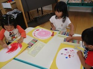 月刊絵本やお絵描き、ダンスなどをそれぞれの学年で行ってから外遊びをしました。
