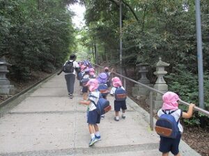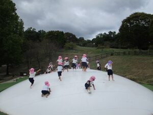 水度神社から歩いて鴻ノ巣山運動公園に行きました。途中で雨が少し降りましたが、公園に着くころには止んで、遊具でたくさん遊びお弁当を食べました。