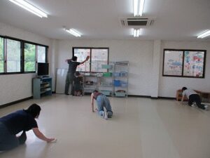 保護者の皆様のご協力で保育室のワックスがけや、園庭の草抜きなどをしていただきました。気持ちよく2学期を迎えられそうです。暑い中ありがとうございました。