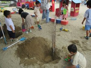 園庭、施設開放日でした。少し涼しかったので外で遊ぶお友達もたくさんいました。
