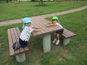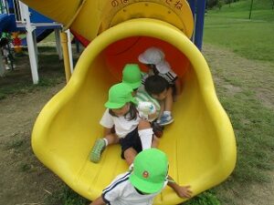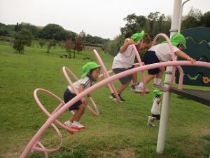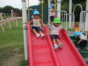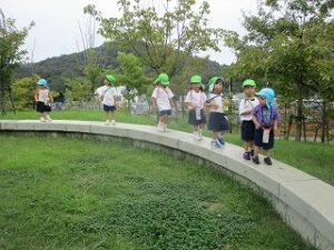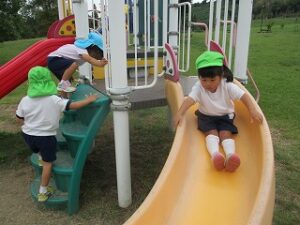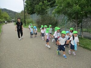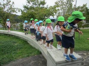 年少、いちご組合同で東部枚方公園へ行きました。少し雨がパラパラ降ってる時もありましたが、元気いっぱい遊びました。いちご組も少しずつ手を繋いで歩いたり、ルールがわかってきたようです。来週は天気がよければ、全園児で太陽ヶ丘へどんぐりをひらいに行きます。