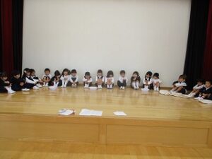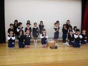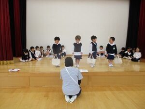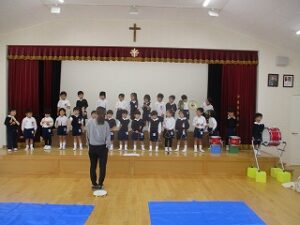 今日からクリスマス発表会の練習が始まりました。年少はオペレッタ、年中は合奏と歌、年長は聖劇をします。今日は立つ場所の確認などをしました。その後、外遊びをしてホールでご飯を食べました。明日は遠足です。お天気になりそうで良かったです。いちご組はお休みなのでお家でゆっくり過ごして下いね。
