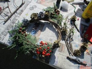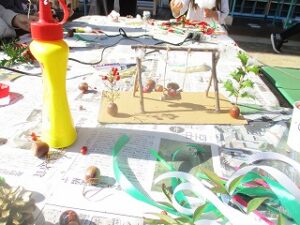 どんぐりや木の実を使って秋の工作をしました。それぞれに工夫してクリスマスの飾りや素敵な作品が出来上がりました。