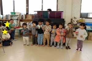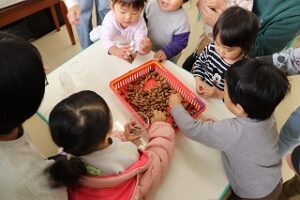 ドングリを使ってマラカスを作り、みんなで演奏しました。その後自由に遊びました。