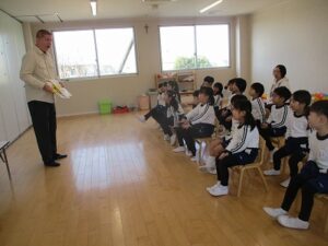 3学期に入っての始めての体育教室、英語教室でした。いちご組はお祈りをして沢山遊びました。今週は寒くなりそうなので今日はいいお天気の中で外遊びが出来ました。
