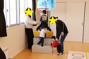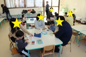紙コップでうさぎのおもちゃを作りました。その後自由に遊びました。