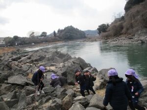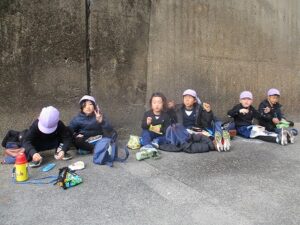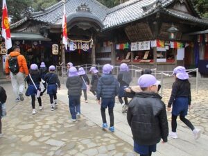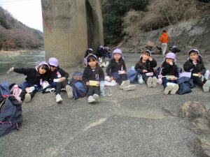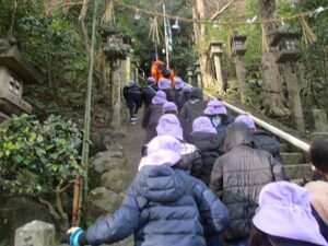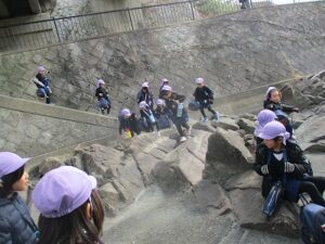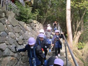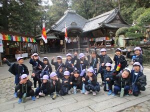 年長児が立木観音に行って来ました。凄いやる気で登り始めた子ども達!途中「もうむり~」「あきらめへんで~」「てんごくまでつずいてるんちゃう?」と色んな声が聞こえてきましたが800段全員が登り切りました。川の近くでお弁当を食べて岩のアスレチック?で遊んだ事も楽しかったみたいです。年長児担当